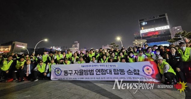 뉴스펀치 김윤걸 기자 | 동구 자율방범연합대(대장 정광훈)는 지난 4월 27일 오후 8시부터 9시까지 일산해수욕장 일원에서 합동 야간 순찰을 했다.