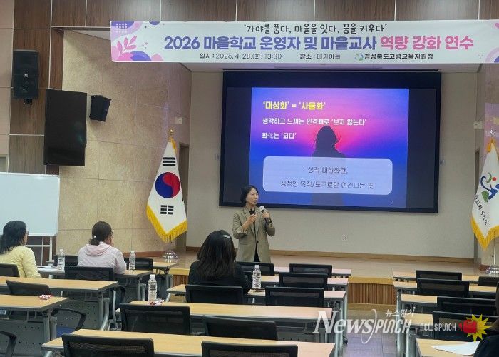 뉴스펀치 박세훈 기자 | 경상북도고령교육지원청은 4월 28일 오후 1시 30분, 고령교육지원청 대가야홀(3F)에서 관내 마을학교 운영자 및 마을교사를 대상으로 ‘2026 고령미래교육지구 마을학교 운영자 및 마을교사 역량강화 연수’를 개최했다.
