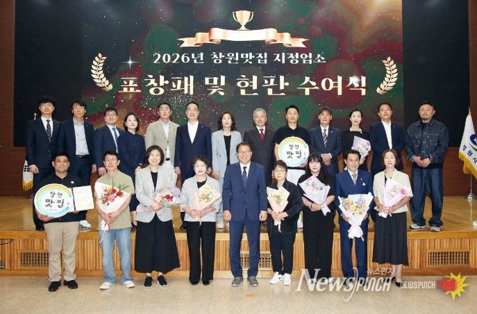 뉴스펀치 박세훈 기자 | 창원특례시는 4월 28일 창원맛집 지정을 10년 동안 유지한 업소 7개소에 대해 표창패와 특별 기념 현판을 수여하고, 2026년 신규 지정된 맛집 7개소에 지정서와 현판을 수여했다고 밝혔다.