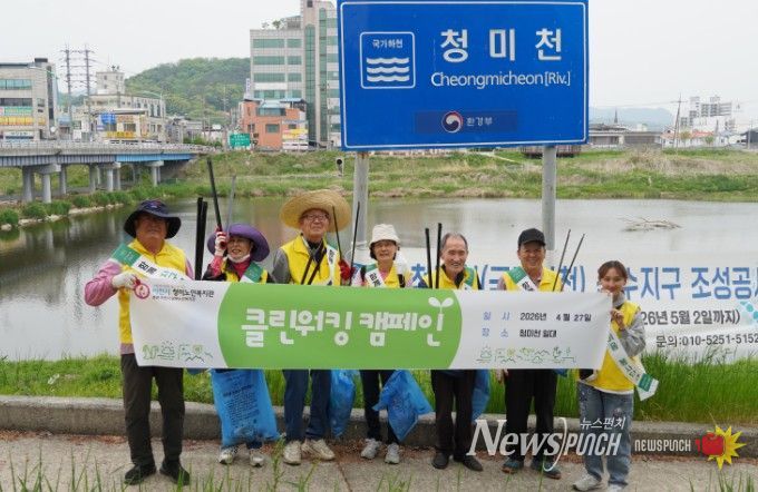 뉴스펀치 박상훈 기자 | 이천시는 이천시 청미노인복지관(관장 최대열)의 선배시민 자원봉사단 ‘그린이음’이 지난 4월 27일 청미천 일대에서 클린워킹, 일명 ‘줍깅’ 캠페인을 진행했다고 밝혔다.