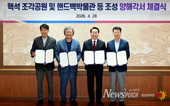 인천광역시는 4월 28일 인천시청 대접견실에서 조각가, ㈜시몬느, 블루코어PFV㈜와 ‘핵석 조각공원과 핸드백 박물관·핵석 전시관 조성’을 위한 양해각서를 체결했다.