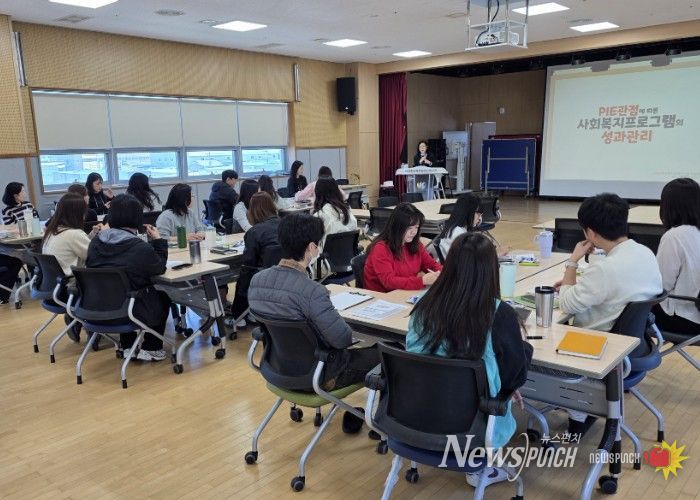교육은 고이경 한국복지경제연구원 책임연구원을 초청해 ‘환경 속의 인간(PIE) 관점에 따른 사회복지 프로그램 성과관리’를 주제로 진행됐다.