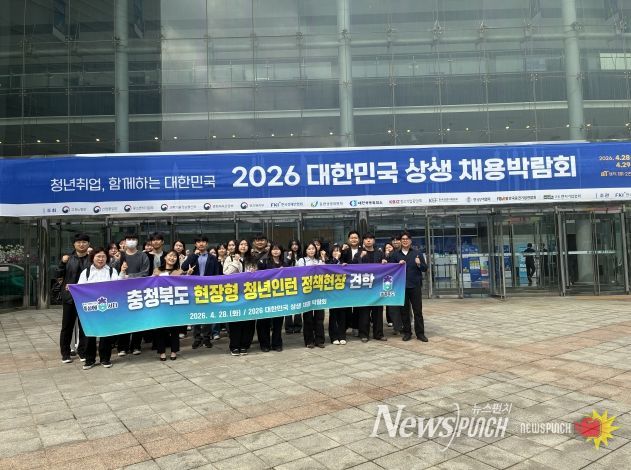 뉴스펀치 이현승 기자 | 충북도는 28일 도내 현장형 청년인턴 34명을 대상으로 서울 aT센터에서 열린 ‘2026 대한민국 상생 채용박람회’에서 정책현장견학을 실시했다.