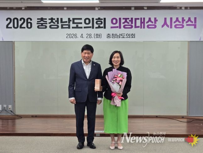 뉴스펀치 이현승 기자 | 충청남도의회 신순옥 의원(비례·국민의힘)이 28일 열린 ‘2026 충청남도의회 의정대상’에서 입법활동 부문 수상자로 선정됐다.