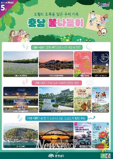 뉴스펀치 이현승 기자 | 충남도는 5월 가정의 달을 맞아 황금연휴에 가족과 함께 1∼2일 일정으로 다녀오기 좋은 여행지를 담은 ‘월간 충남 5월호’를 발간했다.