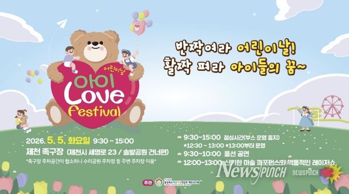 이번 행사는 오전 9시 30분부터 오후 3시까지 제천족구장에서 열리며, 어린이와 가족이 함께 즐길 수 있도록 기념식과 공연, 체험활동 등 다양한 프로그램이 진행될 예정이다.