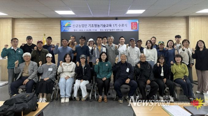 뉴스펀치 이현승 기자 | 예산군은 지난 28일 농업기술센터 세미나실에서 ‘2026년 신규농업인(귀농·귀촌) 기초영농기술교육’ 수료식을 개최했다고 밝혔다.