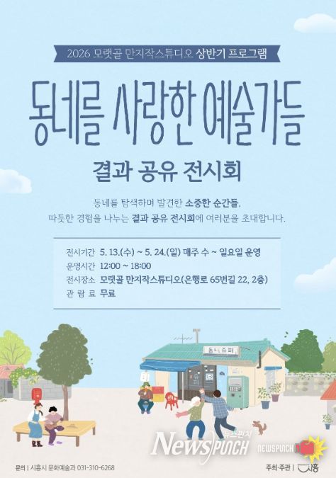 뉴스펀치 박상훈 기자 | 시흥시는 오는 5월 13일부터 24일까지 문화재생공간 모랫골 만지작스튜디오에서 2026년 상반기 프로그램 ‘동네를 사랑한 예술가들’ 결과 공유 전시를 개최한다.