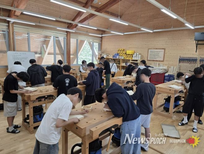뉴스펀치 박세훈 기자 | 상주시 성주봉자연휴양림의 상주목재문화체험장과 힐링센터에서는 지난 4월 27일 안동경덕중학교 학생들 150여명을 대상으로 목재문화체험장과 힐링센터에서 독서대 만들기 체험과 숲 해설 체험을 진행했다.