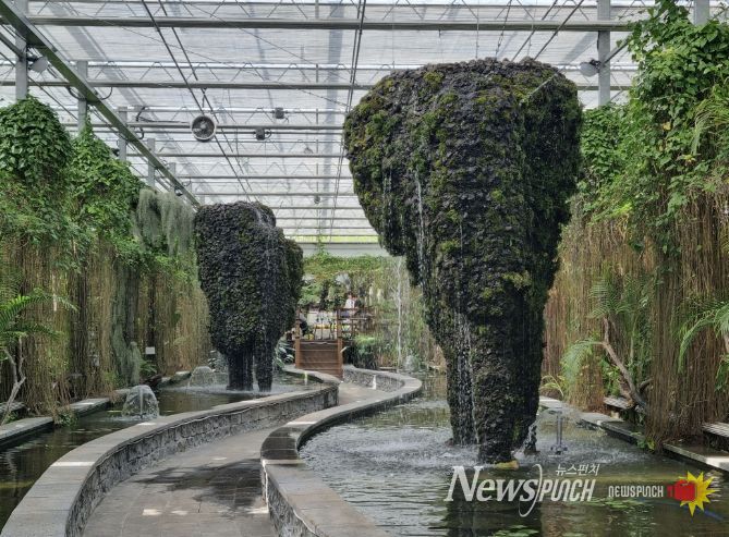 뉴스펀치 김용희 기자 | 제28회 함평나비대축제가 열리는 함평 엑스포공원 내 수생식물관에 조성된 ‘정글경관’이 신비로운 연출로 관람객들의 이목을 끌고 있다.