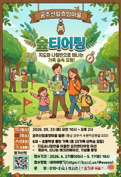 뉴스펀치 이현승 기자 | 공주시는 자연 속에서 가족이 함께 즐길 수 있는 체험 행사인 ‘숲티어링’ 참가자를 모집한다고 29일 밝혔다. (사진제공)