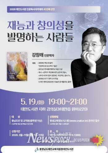 뉴스펀치 이현승 기자 | 충청남도태안교육지원청태안도서관은 오는 5월 19일 오후 7시 도서관 지하 강의실에서 ‘재능과 창의성을 발명하는 사람들’을 주제로 인문독서 아카데미를 운영할 예정이다.