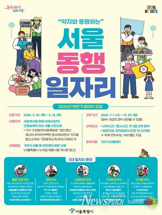 뉴스펀치 박상훈 기자 | 서울시가 저소득, 실업자 등 취업 취약계층이 디지털 안내, 돌봄, 안전 지원 등 다양한 현장에서 또 다른 사회적 약자를 돕고 자존감을 회복하는 ‘서울 동행일자리’를 올 하반기에 확대한다. 시는 돌봄건강·경제·사회안전·디지털·기후환경 등 5개 분야 763개 사업에서 시·구 합산 총 6,943명 규모로 참여자를 모집한다.