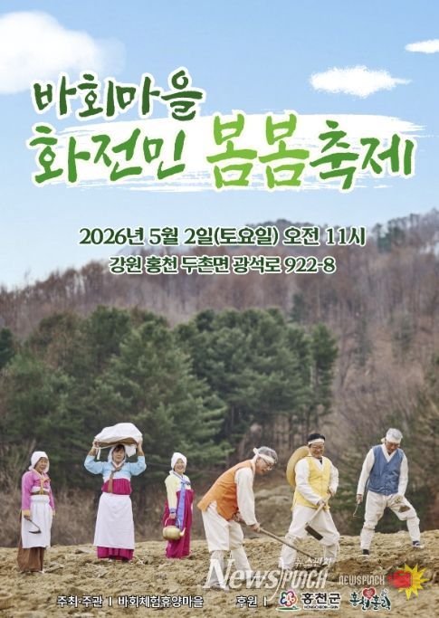 뉴스펀치 조평훈 기자 | 홍천 산골 마을에서 화전민의 삶과 봄의 식문화를 한자리에서 체험할 수 있는 ‘화전민 봄봄 축제’가 열린다. 홍천군 두촌면 바회 마을은 오는 5월 2일 오전 11시부터 마을 일원에서 주민 참여형 축제를 개최한다.