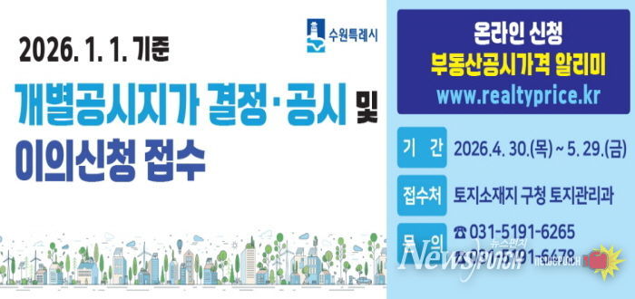 뉴스펀치 박상훈 기자 | 수원시 권선구는 4월 30일 결정·공시되는 개별공시지가에 대해 4월 30일부터 5월 29일까지 이의신청을 접수한다고 밝혔다.