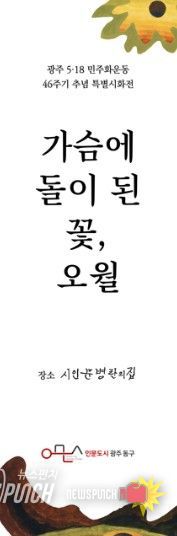 뉴스펀치 김용희 기자 | 광주 동구는 5·18민주화운동 46주년을 기념해 인문거점시설인 시인 문병란의 집에서 특별 시화전 ‘가슴에 돌이 된 꽃, 오월’을 오는 5월부터 8월까지 개최한다고 밝혔다.