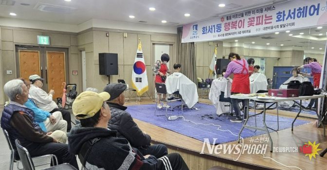 뉴스펀치 박상훈 기자 | 수원시 팔달구 화서1동은 지난 28일, 대한미용사회 팔달구지회와 협력하여 관내 취약계층 어르신을 위한 ‘찾아오는 이미용 서비스’를 운영했다.