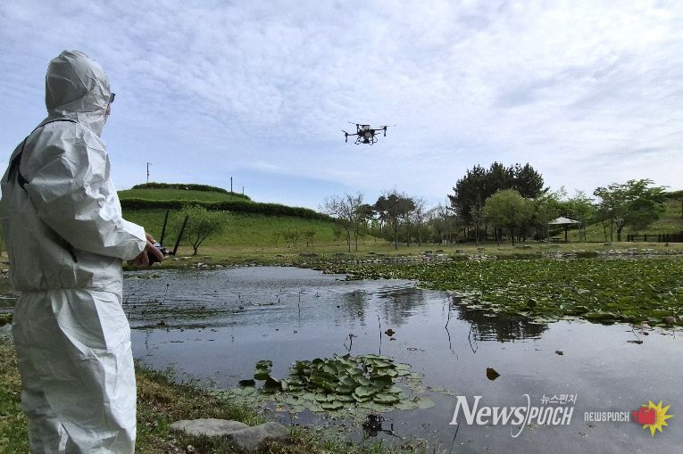 뉴스펀치 김윤걸 기자 | 전남 나주시는 친환경 방역 약품과 첨단 드론 기술을 활용해 인력 접근이 어려운 호수공원 수면 등 방역 사각지대를 해소하고 시민들에게 쾌적한 환경을 제공하기 위해 드론 방역사업을 추진한다.