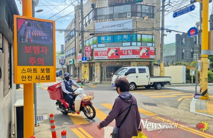 이번에 도입된‘스마트 알림이’는 대성초등학교 어린이 보호구역에 신호등이 없는 횡단보도와 교차로 사각지대 등 교통사고 위험이 높은 구간에 설치되어 CCTV 영상을 실시간으로 표출함으로써 보행자와 운전자 모두에게 차량 접근 상황을 직관적으로 전달하는 역할을 한다.