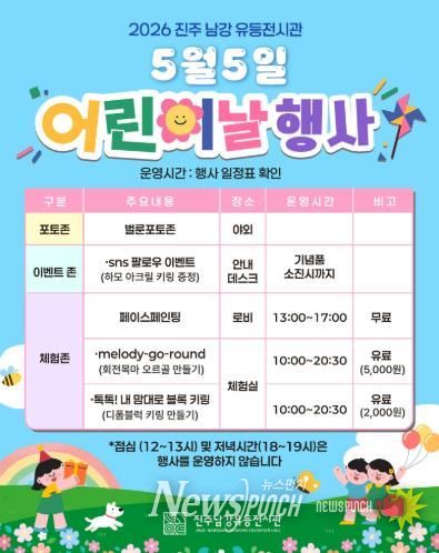 진주시 관계자는 “5월 가정의 달과 어린이날을 맞아 아이들과 가족이 함께할 수 있는 다양한 체험과 전시 프로그램을 준비했다”라며“앞으로도 지속적으로 콘텐츠를 개발해 전 세대가 함께 보고 즐기고 느낄 수 있는 복합문화공간으로 발전시켜 나가겠다”라고 밝혔다.
