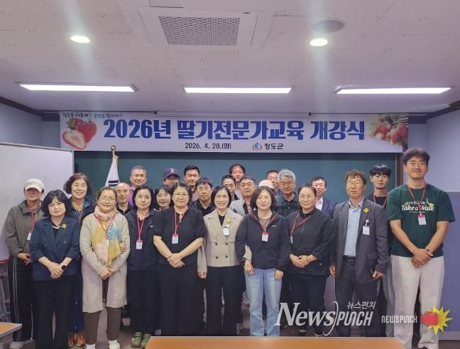 뉴스펀치 박세훈 기자 | 청도군은 4월 28일 농업기술센터 농업교육관에서 ‘2026년 딸기 전문가 교육’ 개강식을 열고 본격적인 교육 운영에 들어갔다.