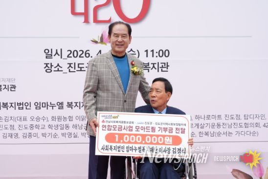 아울러, 이날에는 사회복지법인 임마누엘복지재단(이사장 김경식)이 지역의 발전과 취약계층을 위해 ▲진도군인재육성장학회 ▲고향사랑기부제 ▲모아드림에 각 100만 원씩, 총 300만 원을 기부했으며, 나눔 실천을 위해 ‘장애인사회공헌 420챌린지’를 통해 모금한 42만 원을 모아드림에 기탁 했다.