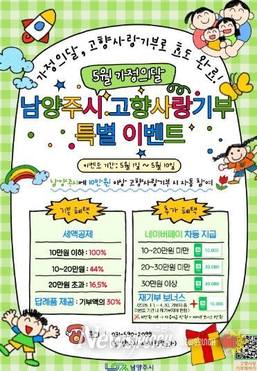 뉴스펀치 박상훈 기자 | 남양주시는 가정의 달을 맞아 5월 1일부터 10일까지 고향사랑기부 특별선물 증정 이벤트를 추진한다고 30일 밝혔다.
