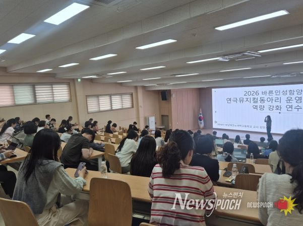 뉴스펀치 이현승 기자 | 충남교육청은 29일, 충청남도교육청교육연수원(공주)에서 2026학년도 ‘바른 인성 함양 연극・뮤지컬 지도교사 배움자리’를 개최했다. 이날 행사는 도내 초중고 연극·뮤지컬 동아리 지도교사 80여 명을 비롯해 14개 교육지원청 담당 장학사, 충남교육연극협회 운영진 등 총 120여 명이 참석했다.