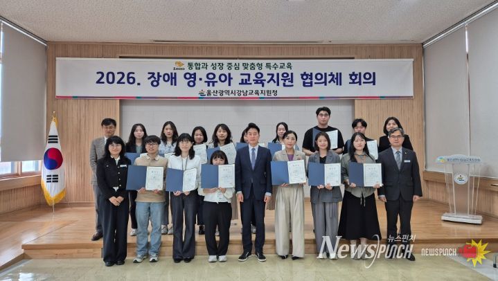 뉴스펀치 김윤걸 기자 | 울산 강남교육지원청은 울산 전 지역의 장애 영유아를 위한 조기 발견과 맞춤형 특수교육을 지원하고자 지역 전문 기관과 함께 ‘장애 영유아 교육지원 협의체’를 구성해 운영한다.