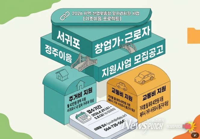 뉴스펀치 김용희 기자 | 제주특별자치도와 제주콘텐츠진흥원(원장 강민부)은 고용노동부와 함께 서귀포시 창업 생태계 활성화와 우수 인력의 안정적인 지역 정착을 위해 '2026 서귀포 창업가·근로자 정주이음 지원사업' 참여자를 모집한다.