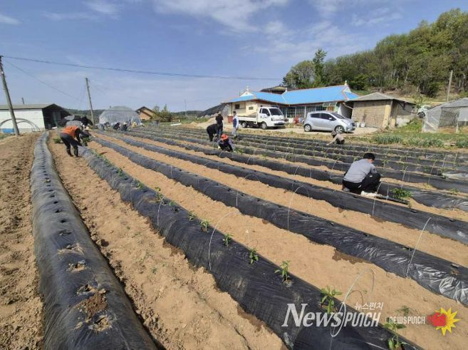 이번 일손돕기에는 결성면 행정복지센터를 비롯해 홍성군청 세무과, 산림녹지과, 수도사업소 직원 20여 명이 참여해 고추 재배 농가에서 고추 심기와 부직포 씌우기 작업을 도우며 구슬땀을 흘렸다.