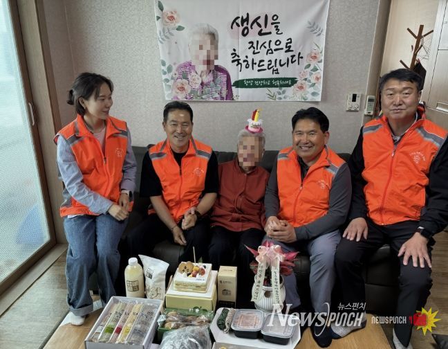 뉴스펀치 이현승 기자 | 아산시 온양5동 행복키움추진단이 지난 29일 가정의 달을 앞두고 4월 생신을 맞은 독거노인 가정을 찾아 축하 인사와 선물을 전달했다.