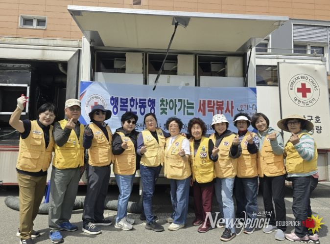 이날 봉사는 대한적십자사 충남지사의 대형 이동식 세탁차량을 활용해 진행됐으며, 봉사회원 20여 명이 참여했다. 이들은 60세대의 이불을 수거해 세탁·건조 후 각 가정에 전달해 큰 호응을 얻었다.