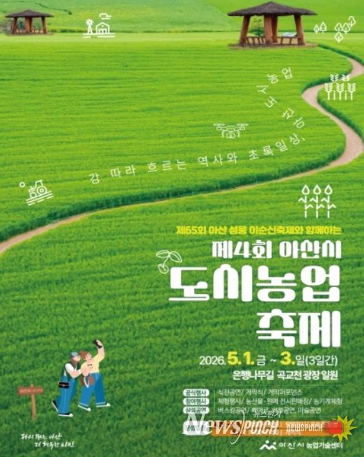뉴스펀치 이현승 기자 | 아산시는 ‘제65회 아산 성웅 이순신축제’와 연계한 ‘제4회 아산시 도시농업축제’를 오는 5월 1일부터 3일까지 3일간 은행나무길 곡교천 광장 일원에서 개최한다.