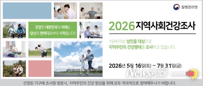 뉴스펀치 박상훈 기자 | 서울 은평구는 다음 달 16일부터 구민 건강 실태를 파악하고 맞춤형 보건사업을 수립하기 위해 ‘2026 지역사회건강조사’를 실시한다고 밝혔다.