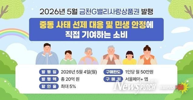뉴스펀치 박상훈 기자 | 금천구는 5월 4일 오전 9시 ‘금천G밸리사랑상품권’ 20억 원을 발행한다고 밝혔다.