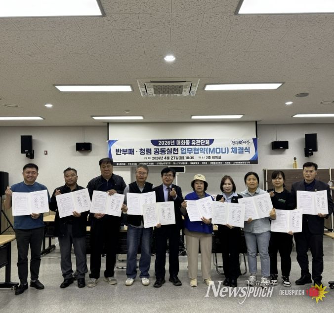 뉴스펀치 박상훈 기자 | 시흥시 매화동 행정복지센터는 지난 4월 27일 청렴 가치 실천과 청렴 문화 확산을 위해 관계단체와 함께 ‘반부패·청렴 공동실천 업무협약’을 체결했다.