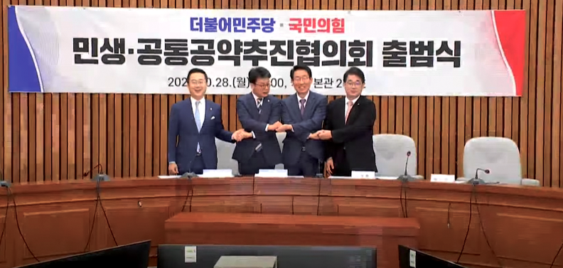양당 의장은 합의문을 통해 “민생·공통공약의 추진을 위해 양당 정책위원회 의장, 원내 수석부대표가 참여하는 민생공통공약추진협의회를 구성·운영한다”며 “민생공통공약추진협의회는 상시 운영하며, 필요에 따라 공개·비공개 협의 방식으로 진행한다”고 밝혔다.
