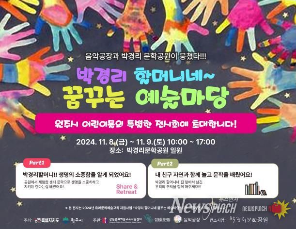 뉴스펀치 김보성 기자 | 원주시는 오는 11월 8일과 9일 이틀간 박경리문학공원에서 박경리 문학 선양 행사를 ‘박경리 할머니네 꿈꾸는 예술마당’ 작품 전시회와 협업 개최한다.