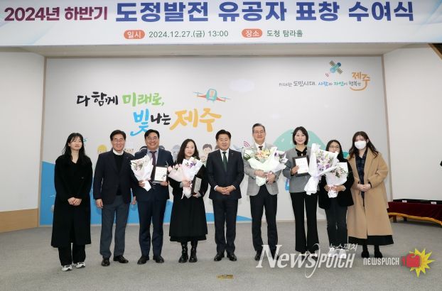 뉴스펀치 천세두 기자 | 제주특별자치도는 27일 오후 1시 도청 탐라홀에서 ‘2024년 하반기 정기유공자 표창 수여식’을 개최하고 도정발전 유공자를 시상했다.