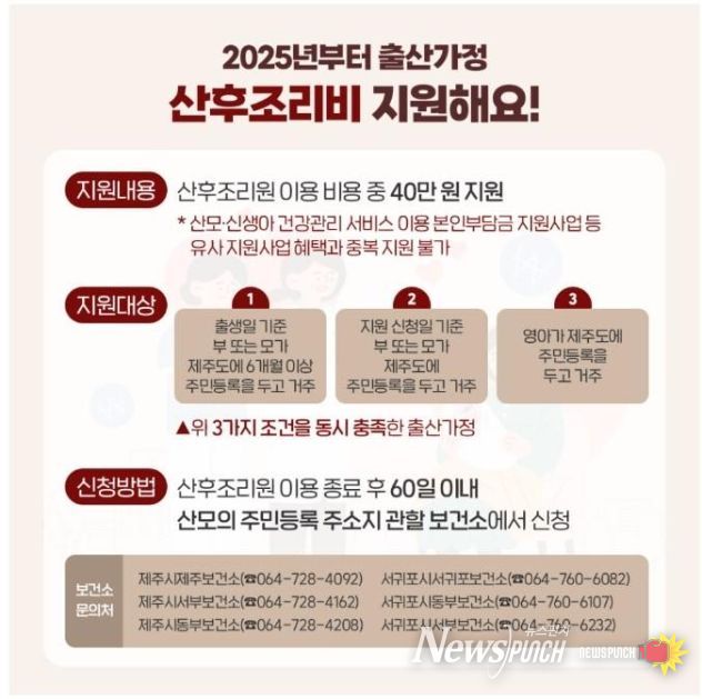 뉴스펀치 천세두 기자 | 서귀포보건소에서는 초저출생 위기를 극복하고 출산가정의 경제적 부담을 덜기 위하여 2025년 1월부터 임신 준비단계부터 출산 이후까지 지원 정책을 보다 더 강화한다고 밝혔다.