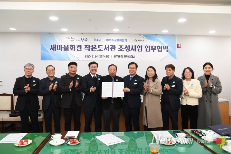 지난 24일 완주군과 (사)완주군새마을회는 ‘새마을회관 작은도서관 조성’을 위한 업무협약을 체결했다.