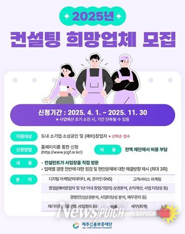 뉴스펀치 천세두 기자 | 제주신용보증재단은 지역 내 소상공인들의 효율적인 경영과 지속가능한 성장을 도모하고자 ‘2025년도 맞춤형 컨설팅 사업’을 추진한다고 밝혔다.