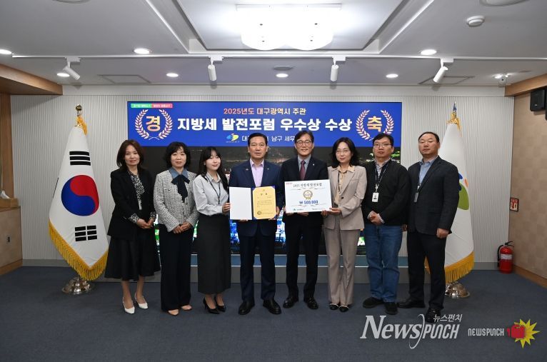 뉴스펀치 조평훈 기자 | 대구 남구는 대구시가 주관한 '2025년 지방세 발전포럼'에서 우수상을 수상했다고 밝혔다.