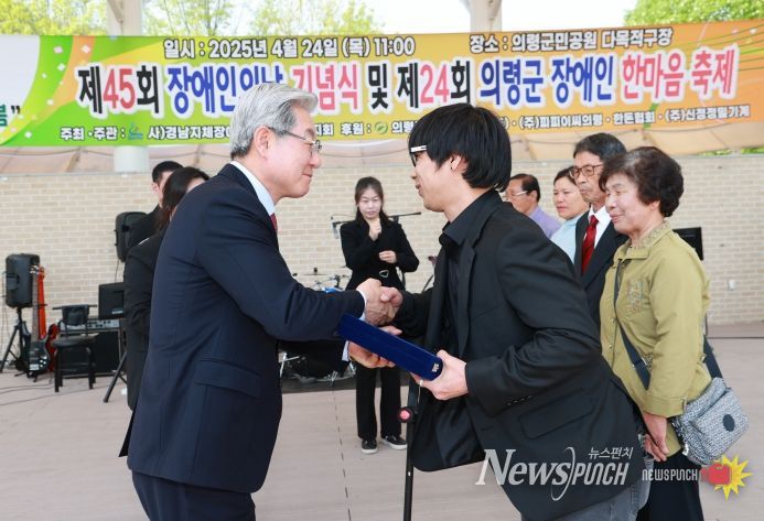 한편 24일 의령군민공원 다목적구장에서는 지체장애인협회 의령군지회(지회장 이진배) 주관 제45회 장애인의 날 기념식 및 제24회 의령군 장애인 한마음대회가 개최됐다.