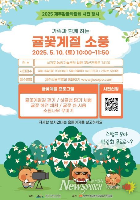 뉴스펀치 천세두 기자 | 제주의 대표 과일인 감귤이 하얀 꽃망울을 터뜨리는 계절, 그 아름다움을 직접 느낄 수 있는 특별한 행사가 열린다.