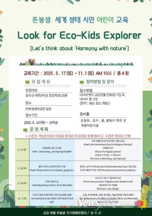 장수군생태관광협의체 장미선 사무장은 “이번 프로그램은 어린이들이 생태 시민으로 성장하고 글로벌 역량도 키울 수 있는 기회”라며 “많은 관심과 참여 바란다”고 말했다.