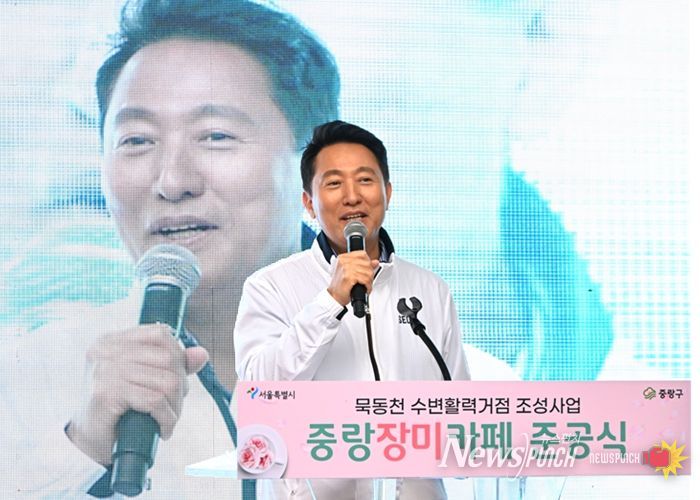 뉴스펀치 김완규 기자 | 오세훈 서울시장은 9일 오후 중랑장미공원(중랑구 묵동)에서 열린 '묵동천 수변활력거점 개장행사'에 참석해 시민들을 만났다.