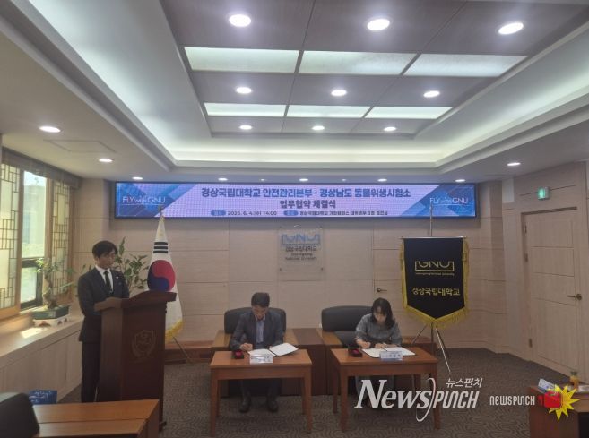 뉴스펀치 김길룡 기자 | 경상남도 동물위생시험소는 4일 오후 2시 경상국립대학교에서 연구 종사자 안전 역량 강화 및 연구실 안전관리 문화 확산을 위해 경상국립대학교 안전관리본부(본부장 고필옥)와 업무협약을 체결했다고 밝혔다.