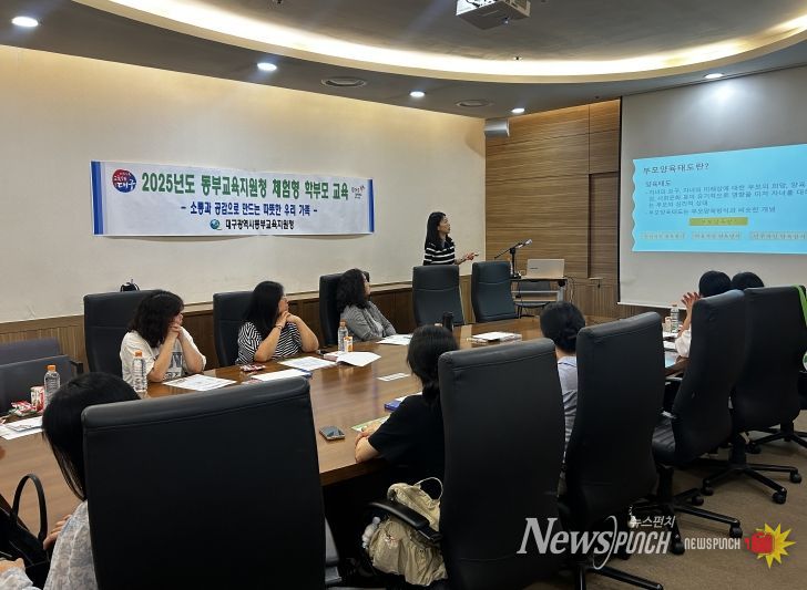 뉴스펀치 조평훈 기자 | 대구동부교육지원청은 6월 2일부터 30일까지 관내 유치원 및 초등학교 학부모를 대상으로 ‘지속가능한 가족공동체 관계 강화를 위한 체험형 학부모 교육’을 운영한다고 밝혔다.